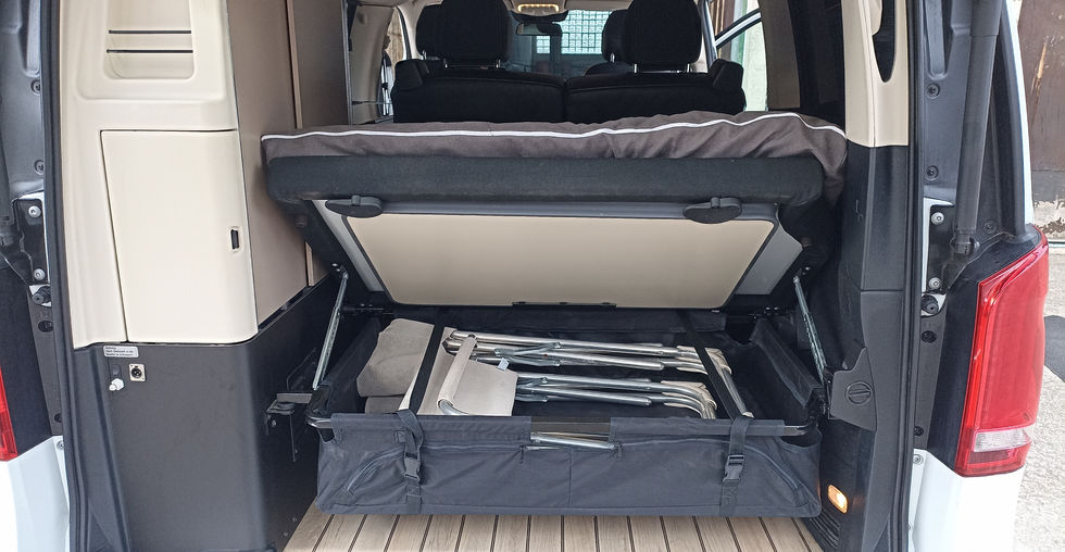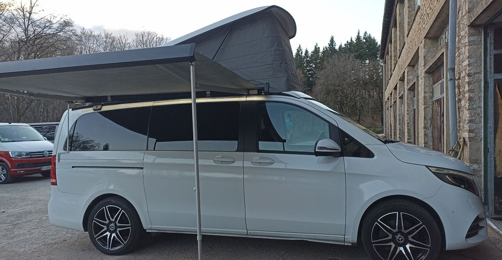 ABS, ESP, Airbags frontaux et latéraux et autres, Antidémarrage, Diesel avec filtre à particules, Direction assistée, Système antipatinage, Fermeture centralisée, Feux de jour, Boîte automatique 7G-TRONIC PLUS, Étriers de frein avec monogramme Mercedes-Benz, Éclaireurs de sortie, Éclairage de proximité dans les rétroviseurs ext., Éclairage pour plancher AV, Éclairage de proximité hayon, Feu stop adaptatif, Phares LED intelligent light system, Allumage automatique des feux de croisement, Monogramme accès Mercedes-Benz éclairé, Train de roulement agility control, Pédales sport, Sièges AV chauffants et pivotants, Sièges cuir, Sièges AV Confort avec soutien lombaire, Filets de rangements pour les sièges AV, Volant réglable en inclinaison et en hauteur, Volant cuir, Volant multifonction incl. ordinateur de bord, Pare-chocs et pièces rapp. peints dans coul.vehic., Toit ouvrant relevable en verre électrique, Assistance au démarrage en cote, Radio et GPS « COMAND ON LINE », Système de sonorisation, Affichage ECO, Fonction START/STOP ECO, Tempomat (régulateur de vitesse), Pack Blueefficiency, LIVE TRAFFIC Information, Module de communicat. services Mercedes Me Connect, Remote Online, Systeme appel de secours Mercedes-Benz, Aide active au stationnement, Rétroviseur ext. rabattable automatiquement, Assistant angle mort, Assistant de signalisation routière, Capteur de pluie, Combiné instruments avec écran couleur, Pack assistant de trajectoire, Détecteur de voie, ATTENTION ASSIT, Console centrale avec store, Miroir éclairé pour pare-soleil, Ouvert. et fermeture confort a. telecom.infrarouge, Climatiseur automatique « Thermotronic », Climatiseur semi-autom. Regulé « Tempmatic » AR, Chauffage stationnaire HZ1, Chauffage auxiliaire électrique HZ0, Revêtement de plancher finition bateau clair, Lunette AR ouvrante séparément, Hayon à ouverture électrique EASY-PACK, Vitres teintées, Peinture métallisée, Prises 12V, Avertisseur oubli de ceinture pour siège passager, Boite à gants verrouillable, Rétro.ext. elect. et chauff. avec clignot.integr., Rétroviseur ext. et int. Electrochrome, Inserts décoratifs AMG, Déflecteur AMG sur hayon, Clé design chromée, Témoin d'alerte pour niveau de rempli. lave-glace, Réservoir principal 70 litres, AMG line, Jantes alliage AMG 19 pouces (naturel brillant), Surveillance press.pneus ess.av. et arr. sans fil, Sécurité enfant sur les portes de l'habitacle, Toit relevable manuel, 4 couchages, Cuisine avec évier frigo et réchaud 2 gaz, Roue de secours avec cric, Dispositif arrêt de porte coulissante actif, Attelage amovible, Charge remorquée 2500kg, Table de camping et 2 chaises, Auvent latéral anthracite.