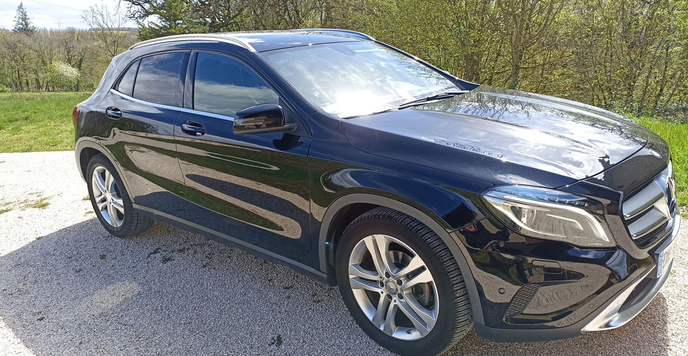 Mercedes GLA 200 boîte 7GTronic, Toit vitré panoramique, GPS, Radars de stationnement AV et AR, Caméra de recul, Sièges cuir partiel, Sièges AV chauffants, Volant multifonctions, Ordinateur de bord, Bluetooth, Climatisation automatique, Start & Stop, Jantes alliage, Ouverture du coffre électrique, Seuils de portes rétro-éclairés... Grosse révision et vidange de boîte automatique faites à la vente, Parfait état !